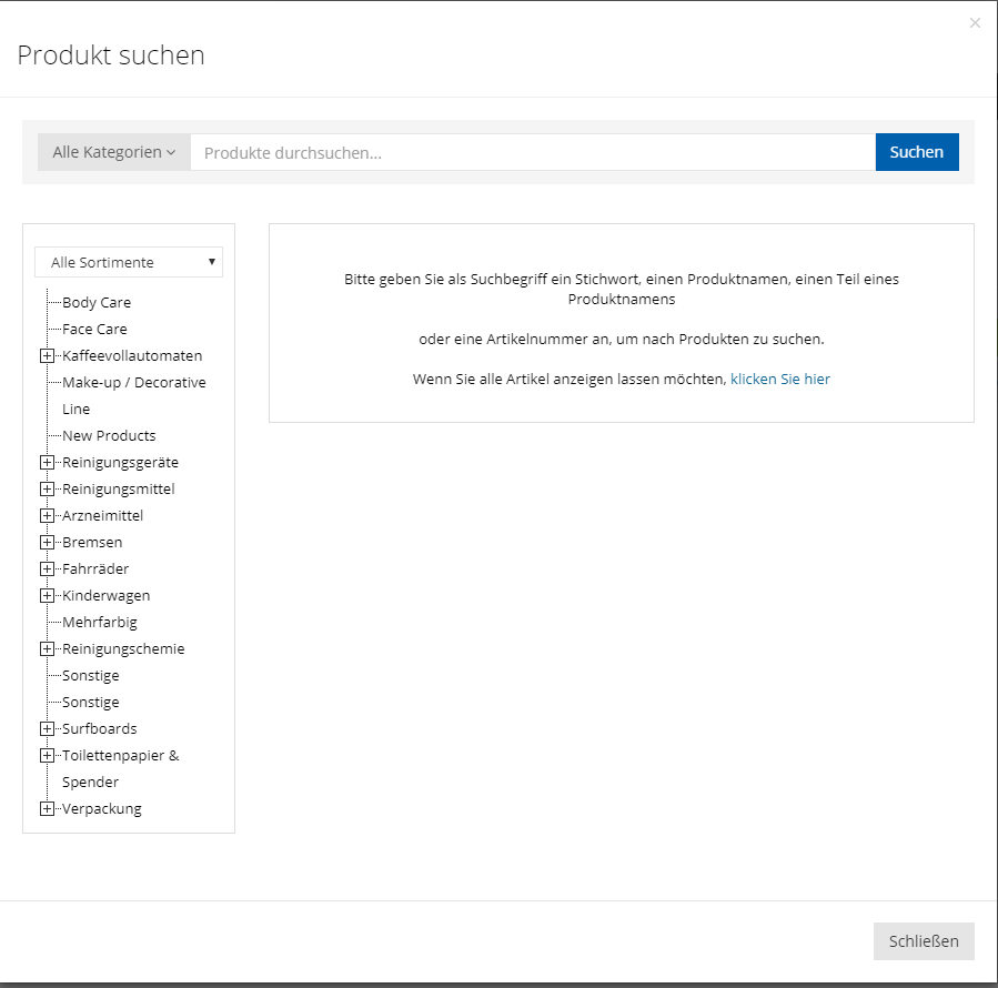 Nun können Artikel ausgewählt werden die regelmäßig und automatisch über den Dauerauftrag bestellt werden sollen.