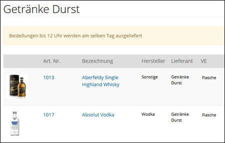 Pro Lieferant können Bestellhinweise hinterlegt werden. Diese werden im Warenkorb in einem separaten Fenster angezeigt