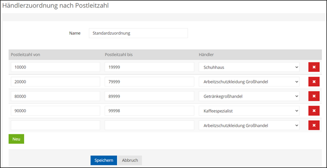 Händlerzuordnung über Postleitzahlenmapping