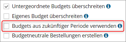 Ein neues Recht ermöglicht die Steuerung, ob Bestellungen auf das Budget des nächsten Monats gebucht werden dürfen oder nicht.