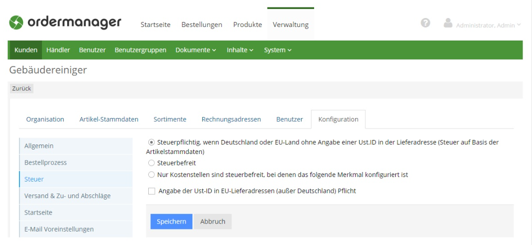 Über eine zusätzliche Option kann die Angabe der Ust.ID bei EU-Lieferadressen als Pflichteingabe definiert werden.