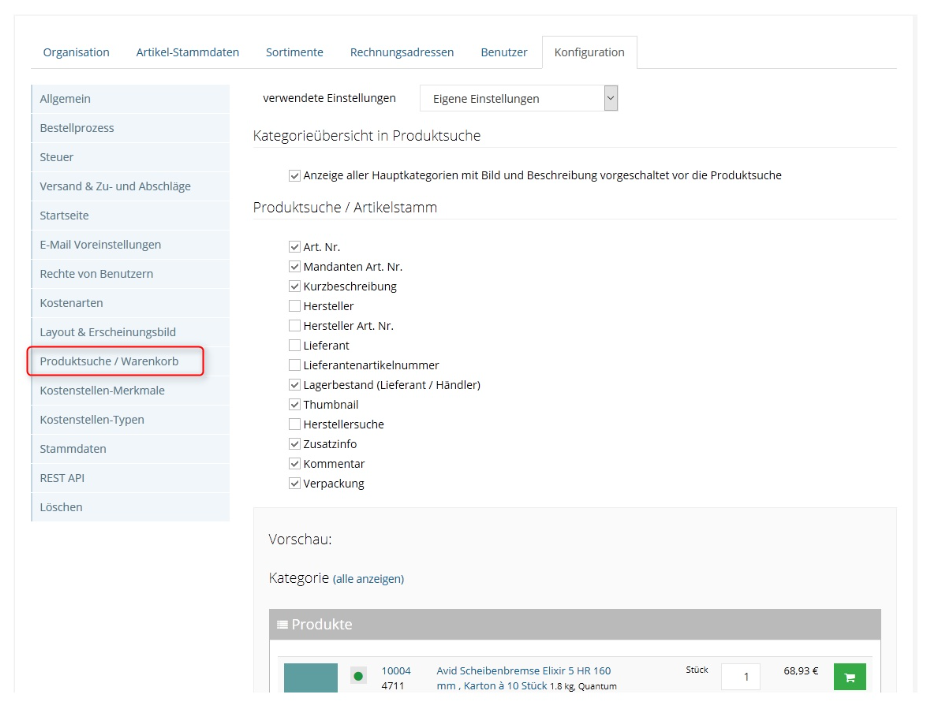 Mandantenindividuelles Layout Produktsuche & Warenkorb