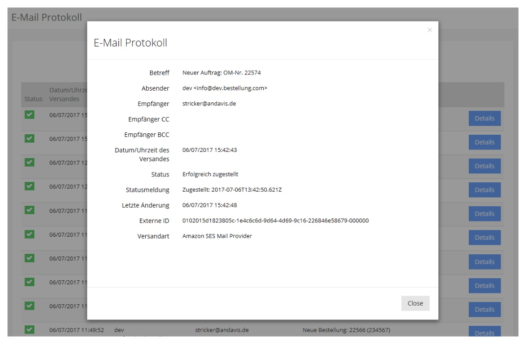 In der Standard-Konfiguration vom supplymanager werden E-Mails über einen lokalen SMTP Server versendet. Diese einfache und kostengünstige Version hat aber den Nachteil, dass eine Auswertung von Fehlern bei der Zustellung nur über die Log-Dateien vom Server möglich ist. Wir haben eine zusätzliche Option für den E-Mailversand geschaffen, die es erlaubt E-Mails über einen externen Cloud-Provider zu versenden. Hier liegt der Vorteil darin, dass es für jede E-Mail zwei Rückmeldungen gibt: Die erste Rückmeldung, wenn die E-Mail versendet werden konnte. Und die zweite Rückmeldung, wenn der E-Mailserver am Ziel die E-Mail verarbeiten konnte. Wenn Fehler auftreten, werden diese direkt an den supplymanager zurückgemeldet und sind als Administrator über die Systemeinstellungen einsehbar.